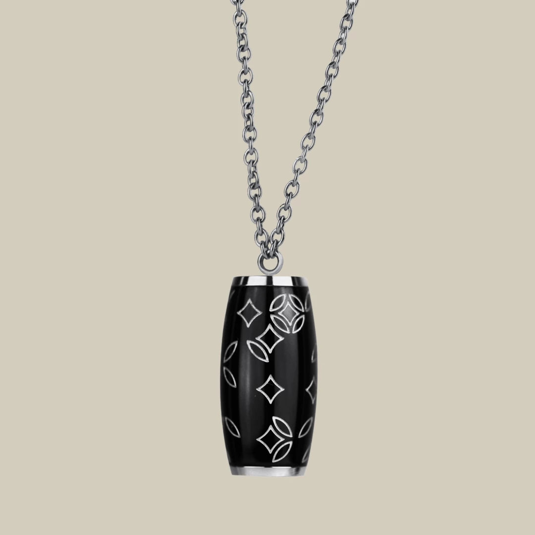 استمتع بأناقة راقية مع قلادة سيارة ليجاسي السوداء من فيذرز. تصميمها الأسطواني الفريد، المزين بنقشنا الحصري، يجمع بسلاسة بين الذوق العصري والسحر الكلاسيكي. سواءً علّقتها على مرآة سيارتك أو ارتديتها كقلادة، فهي قطعة مميزة تعكس ذوقك الرفيع في كل تفصيل.