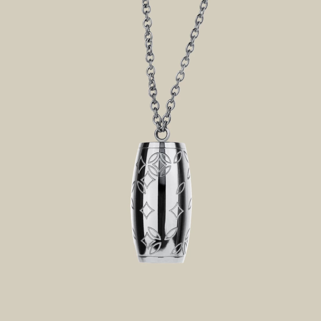 ارتقِ بأسلوبك مع قلادة سيارة ليجاسي الفضية، رمز الأناقة الخالدة. يجمع هذا التصميم الأسطواني الفريد، المزين بنقشنا الحصري، بين الذوق العصري والسحر الكلاسيكي. سواءً أزيّنتِ مرآة سيارتكِ أو ارتديتِها كقلادة، فهي قطعة مميزة تعكس ذوقكِ الرفيع.