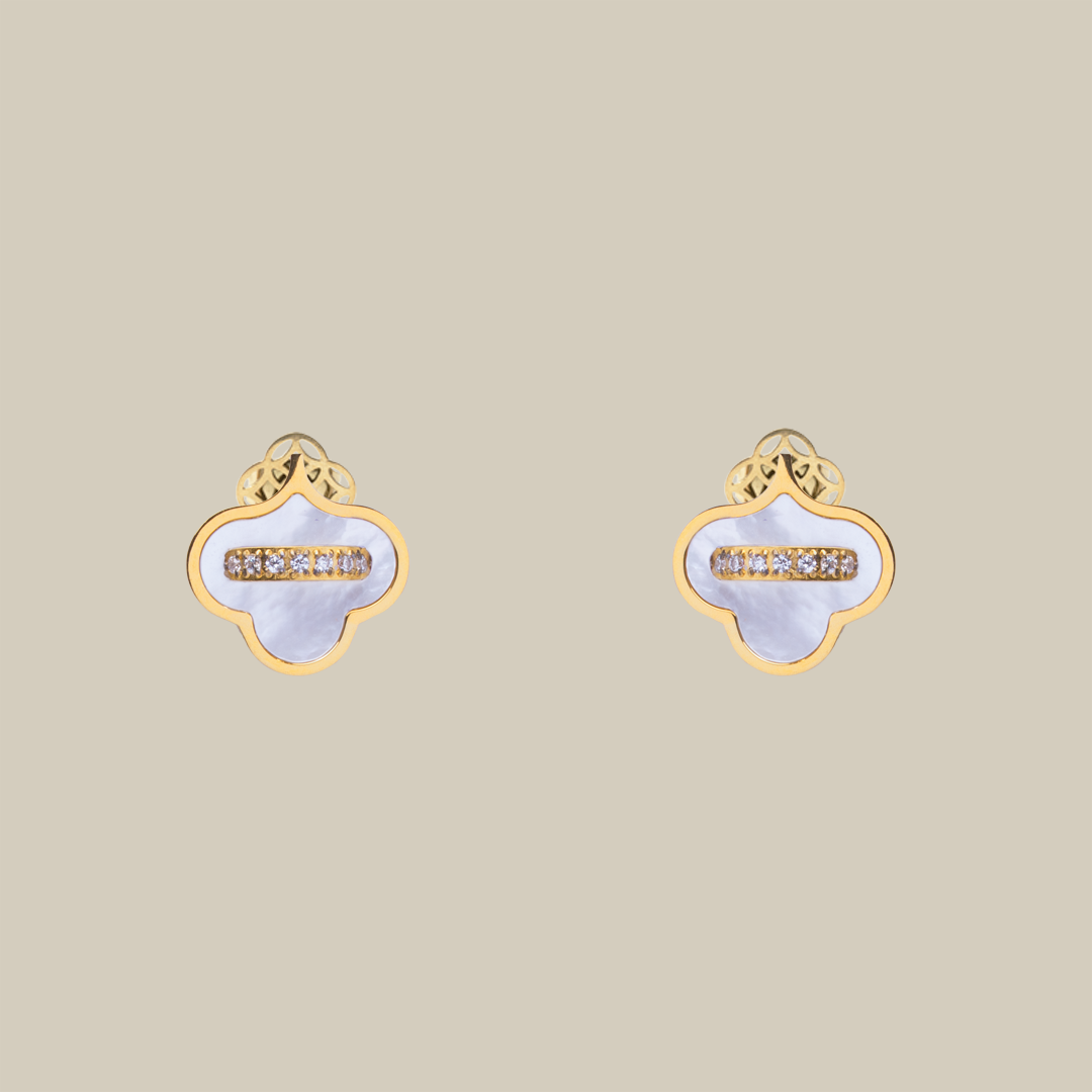 Materials: Made of (stainless steel) plated with 18 carat gold. Inlaid with white mother of pearl and some with green malachite.