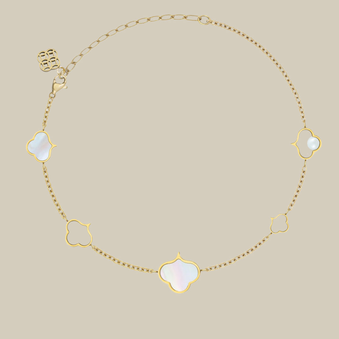 Materials: Made of (stainless steel) plated with 18 carat gold. Inlaid with white mother of pearl and some with green malachite.