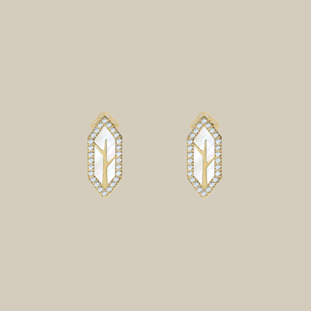Introducing Le Jardin W Crystal Earrings, a captivating and elegant choice. These exquisite earrings feature a unique design with a frame adorned by lustrous white Mother of Pearl, creating a timeless and sophisticated look. Crafted from stainless steel and plated with 18-carat gold, they are a true testament to artistry and refinement.