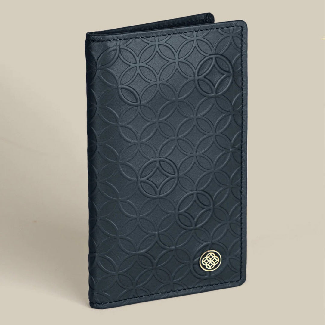 Feathers Navy Mon Amour Long Wallet, a refined accessory that embodies timeless elegance. Made of genuine leather in Italy, this wallet features the distinctive feathers brand pattern, showcasing intricate circles forming a captivating star. With 10 card slots and 2 money slots, it seamlessly combines Italian quality and unique design. Keep all your essentials within easy reach while making a bold fashion statement with this exquisite long wallet.