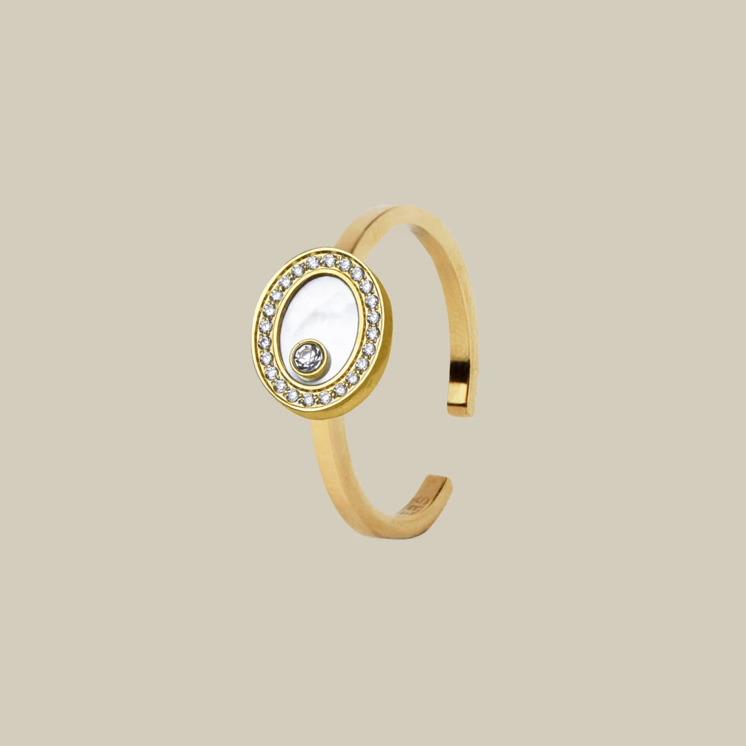 Materials: Made of (stainless steel) plated with 18 carat gold. Inlaid with white mother of pearl and some with green malachite.